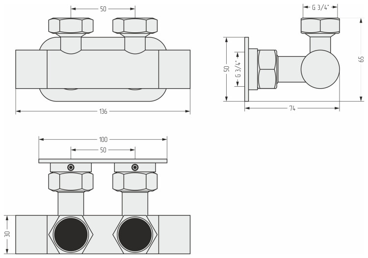 Вентиль, Сунержа, EU50, 2 х НГ G 3/4" / 2 х НГ G 3/4", угловой, скрытый, материал-нержавеющая сталь, цвет-сатин Вентиль, Сунержа, EU50, 2 х НГ G 3/4" / 2 х НГ G 3/4", угловой, скрытый, цвет-сатин