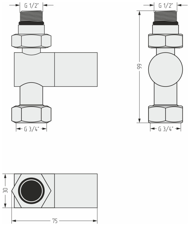 Вентиль, Сунержа, G 1/2" НР х G 3/4" НГ, прямой, цилиндр, материал-нержавеющая сталь, цвет-RAL 9016 Транспортный белый Вентиль, Сунержа, G 1/2" НР х G 3/4" НГ, прямой, цилиндр, цвет-RAL 9016 Транспортный белый