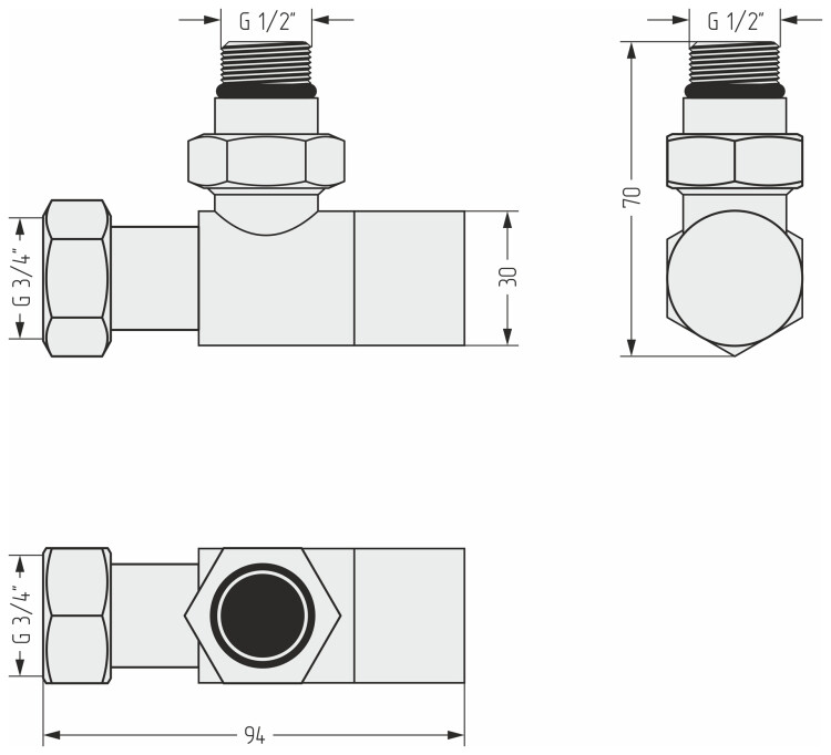 Вентиль, Сунержа, G 1/2" НР х G 3/4" НГ, угловой, под шестигранник, материал-нержавеющая сталь, цвет-сатин Вентиль, Сунержа, G 1/2" НР х G 3/4" НГ, угловой, под шестигранник, цвет-сатин