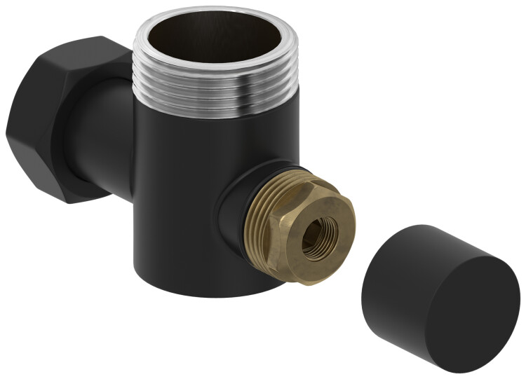 Вентиль, Сунержа, НР G 1" / НГ G 3/4", угловой, под шестигранник, материал-нержавеющая сталь, цвет-черный матовый Вентиль, Сунержа, НР G 1" / НГ G 3/4", угловой, под шестигранник, цвет-черный матовый