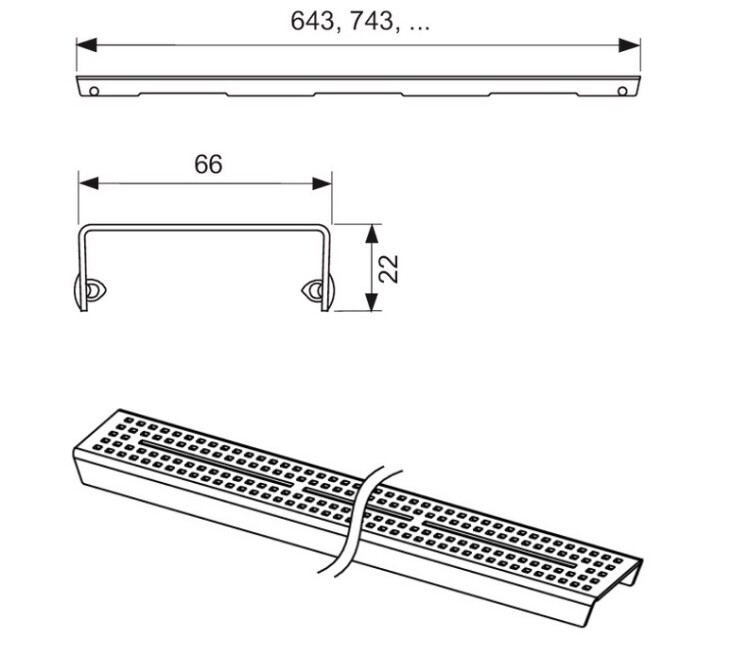 Дизайн-решетка, TECE, TECEdrainlinе, quadratum, ширина, мм-66, длина, мм-1000, высота, мм-22, материал-нержавеющая сталь, декоративная с перфорацией, цвет-нержавеющая сталь матовая Дизайн-решетка, TECE, TECEdrainlinе, quadratum, 1000, цвет-нержавеющая сталь матовая