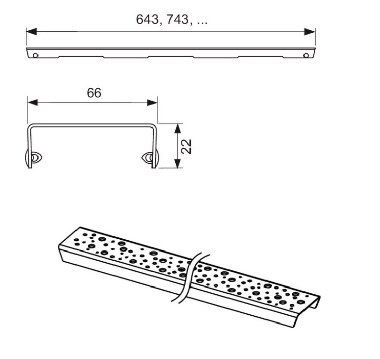 Дизайн-решетка, TECE, TECEdrainlinе, drops, ширина, мм-66, длина, мм-700, высота, мм-22, материал-нержавеющая сталь, декоративная с перфорацией, цвет-нержавеющая сталь Дизайн-решетка, TECE, TECEdrainlinе, drops, 700, цвет-нержавеющая сталь