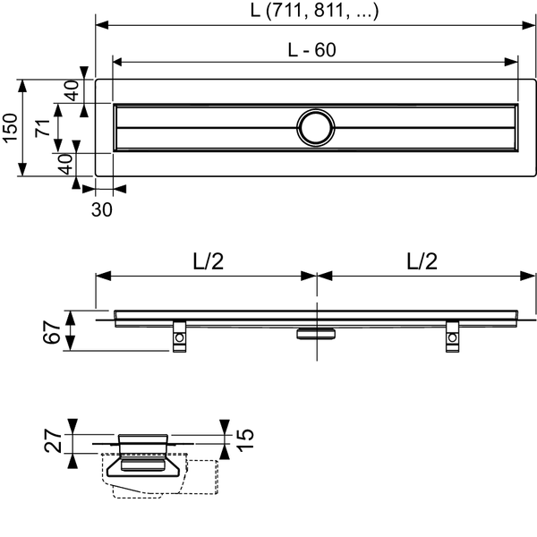 Дренажный канал, TECE, TECEdrainline, ширина, мм-150, длина, мм-1500, высота, мм-67, монтаж-в пол, сифон-необходимо заказать, опоры-необходимо заказать, декоративная решетка-необходимо заказать Дренажный канал, TECE, TECEdrainline, шдв 150*1500*67