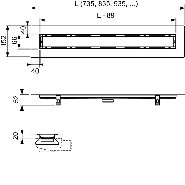 Дренажный канал, TECE, TECEdrainline, ширина, мм-152, длина, мм-1200, высота, мм-52, пропускная способность, л/сек-0,8, материал-нержавеющая сталь Дренажный канал, TECE, TECEdrainline, шдв 152*1200*52