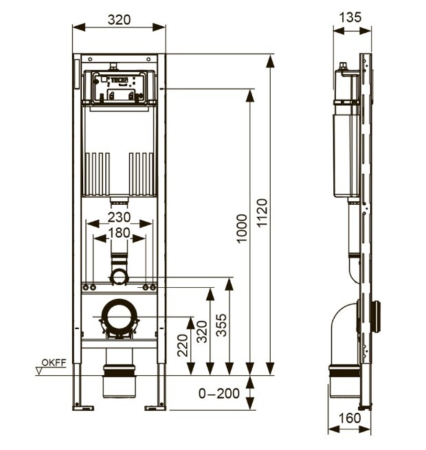 Инсталляция, TECE, TECEbase, для унитаза, со смывным бачком, ширина, мм-320, глубина, мм-160, высота, мм-1120, материал-сталь/пластик, тип установки-к стене, тип смыва-одинарный или двойной, объем бачка, л-7, предустановленный стандартный объем смыва 6 литров, настраиваемый объем смыва 4,5/6 литров, малый слив 3 литра для системы двойного смыва, клавиша смыва-необходимо заказать Инсталляция, TECE, TECEbase, для унитаза, со смывным бачком, шгв 320*160*1120