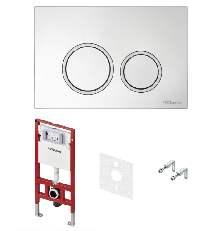 Инсталляция, TECE, TeceSpring R, для унитаза, ширина, мм-506, глубина, мм-165, высота, мм-1144, материал-сталь, тип смыва-двойной, объем смыва, л-6, клавиша смыва-есть, тип управления-механический, материал клавиши-пластик, кнопки-круглые, цвет клавиши-хром глянцевый, крепления в комплекте Инсталляция, TECE, TeceSpring R, для унитаза, шгв 506*165*1144, цвет клавиши/панели-хром глянцевый