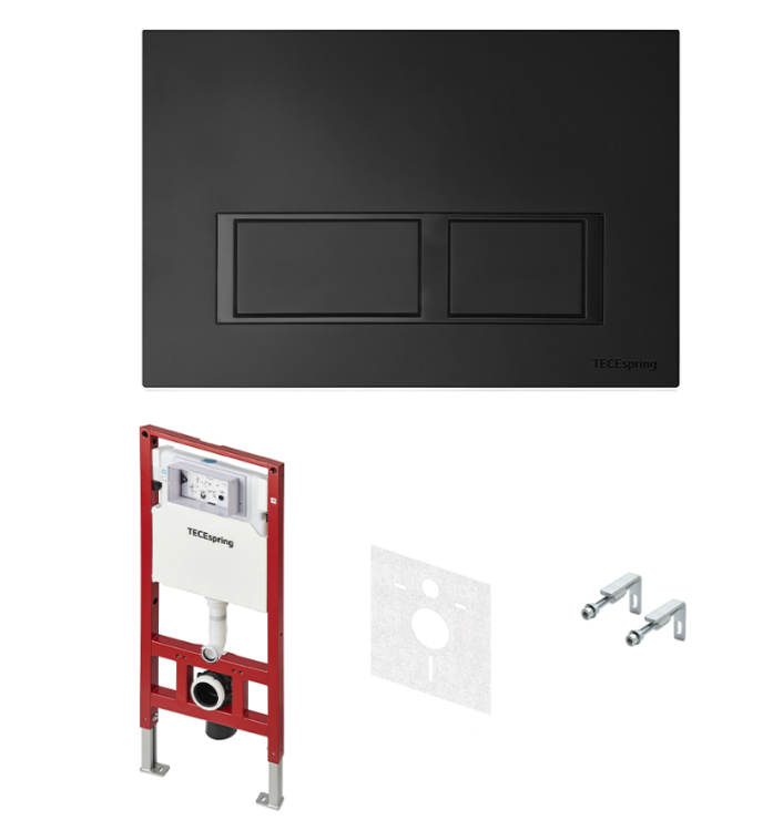 Инсталляция, TECE, TeceSpring V, для унитаза, ширина, мм-506, глубина, мм-165, высота, мм-1144, материал-сталь, тип смыва-двойной, объем смыва, л-6, клавиша смыва-есть, тип управления-механический, материал клавиши-пластик, кнопки-прямоугольные, цвет клавиши-черный матовый, крепления в комплекте Инсталляция, TECE, TeceSpring V, для унитаза, шгв 506*165*1144, цвет клавиши/панели-черный матовый