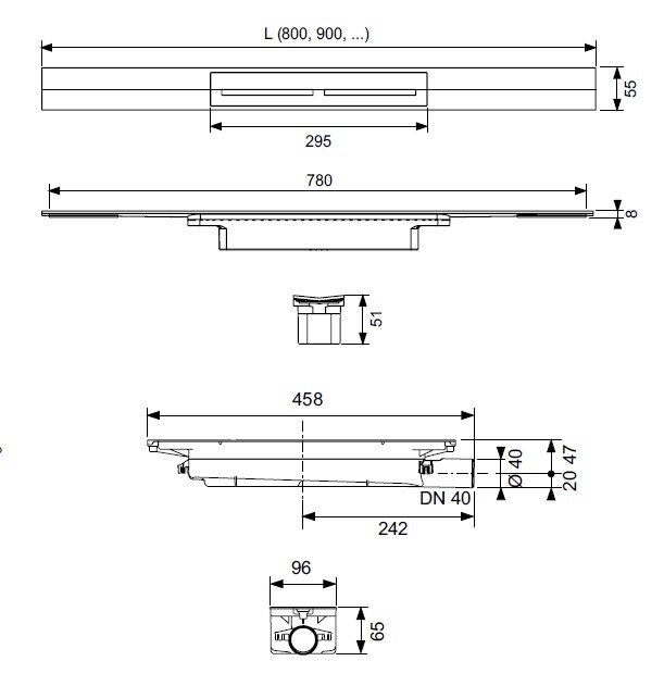 Дренажный канал, TECE, TECEdrainprofile, ширина, мм-55, длина, мм-1000, высота, мм-51, монтаж-в пол, пропускная способность, л/сек-0.48, сифон-"заниженный" DN 40 боковой слив, съемный гидрозатвор, опоры-есть, гидроизоляционная манжета, душевой профиль с уклоном внутрь, декортивная крышка с функцией нажатия-есть, материал-нержавеющая сталь, цвет крышки-сталь сатинированная Дренажный канал, TECE, TECEdrainprofile, шдв 55*1000*51, цвет крышки-сталь сатинированная