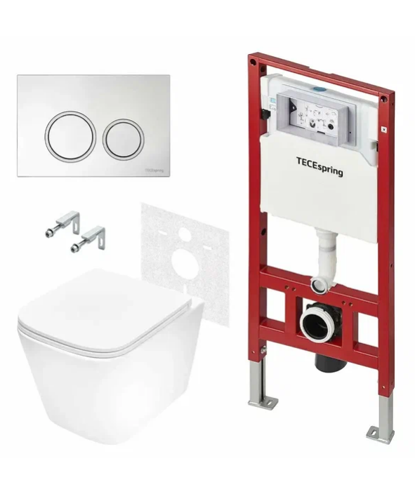 Комплект, TECE, TeceSpring Base, унитаз-есть Model S, безободковый (с открытым смывным краем), тип установки-подвесной, ширина, мм-340, глубина, мм-515, высота, мм-350, форма чаши-прямоугольная, выпуск-горизонтальный, вид смыва-Tornado flush, материал-керамика, крепления в комплекте, две крепежные шпильки M 12 с гайками (для унитаза), соединительный комплект унитаза, включая защитные заглушки, прокладка звукоизоляционная для унитаза, комплект крепежных элементов для установки модуля, фановый отвод для подключения к канализации, цвет унитаза-белый, сиденье-в комплекте, тип шарниров-с плавным опусканием SoftClose, материал сиденья-дюропласт, цвет сиденья-белый, инсталляция-есть, тип установки инсталляции-к стене, размер инсталляции (шгв, мм)-506*165*1144, материал инсталляции-металл, бачок-в комплекте, материал бачка-пластик, объем смыва, л-3/6, клавиша смыва-есть TECEspring R, с круглыми кнопками, тип смыва-двойной, тип управления-механический, материал клавиши-пластик, цвет клавиши-хром глянцевый, контур клавиши хром матовый Комплект, TECE, TeceSpring Base, унитаз Model S+инсталляция+клавиша смыва TECEspring R, цвет унитаза-белый, цвет сиденья-белый, цвет клавиши-хром