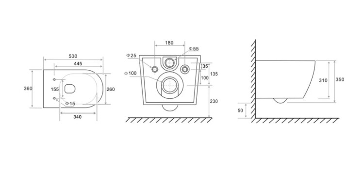 | Бачок | необходима система инсталляции, скрытый бачок |