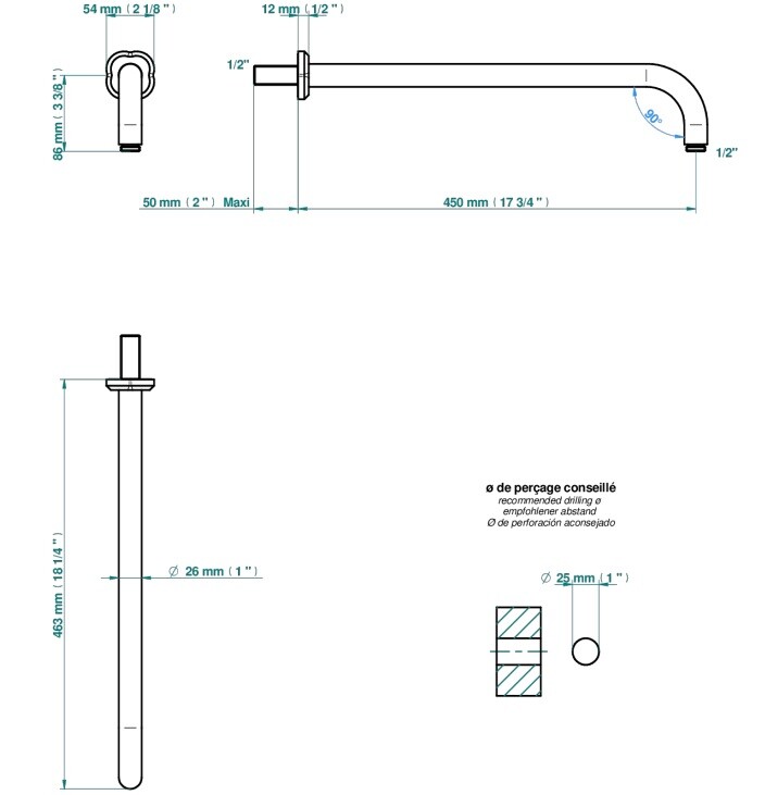 Держатель верхнего душа, THG, Camélia Clear crystal, вид-настенный, вынос, мм-450, 1/2", 90°, цвет-золотистый PVD Держатель верхнего душа, THG, Camélia Clear crystal, цвет-золотистый PVD