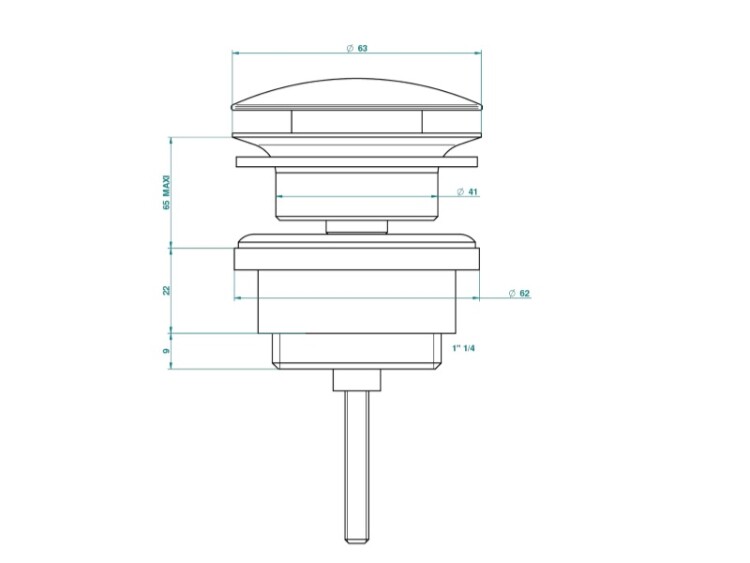 Донный клапан, THG, 1 1/4, диаметр, мм-63, для раковины, тип-Clic Clac, форма крышки-круглая, цвет-матовый никель Донный клапан, THG, 1 1/4, диаметр, мм-63, для раковины, цвет-матовый никель