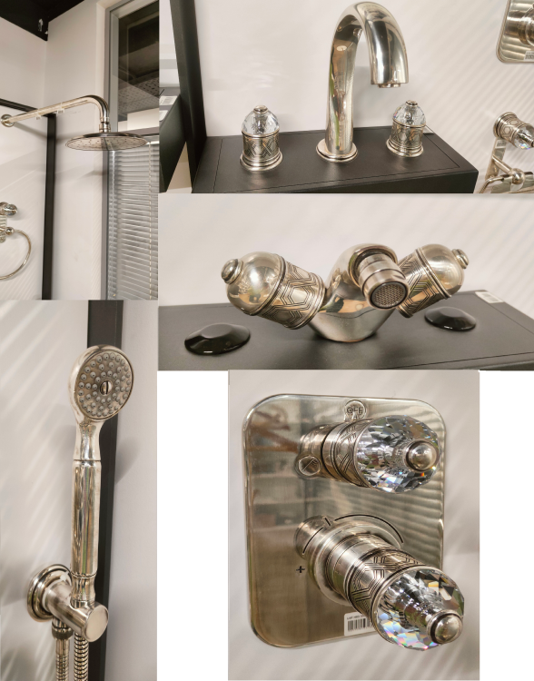 Душевой комплект, THG, Duomo crystal, в комплекте-смеситель для биде, Duomo, арт.U4E H03 3202, тип открывания воды-двухвентильный, отверстия для монтажа-1, высота, мм-80, вынос излива, мм-103, донный клапан-есть, цвет-Antique Silver, смеситель для раковины, арт. U4F H03 151, тип открывания воды-двухвентильный, отверстия для монтажа-3, высота, мм-209, вынос излива, мм-136, донный клапан-есть, цвет-Antique Silver, верхний душ, арт. G00 H03 286, ширина, мм-200, глубина, мм-200, высота, мм-92, форма-круглая, цвет-Antique Silver, держатель верхнего душа, арт. U4F H03 84L, вид-настенный, вынос, мм-450, цвет-Antique Silver, смеситель для душа, арт. U4F H03 5500BE, тип открывания воды-одновентильный, тип регулирования воды-термостатический картридж, тип установки-встраиваемый, цвет-Antique Silver, внутренняя часть, арт. G00 A00 5500AE, для термостатического смесителя, душевой набор, арт. U4F H03 54, форма лейки-круглая, держатель для душа-есть, шланг-есть, длина шланга, мм-1500, шланговое подключение-есть, цвет-Antique Silver Комплект, THG, Duomo crystal, смесители для биде+для раковины+верхний душ+держатель+смеситель для душа+внутр. часть+душевой набор, цвет-Antique Silver