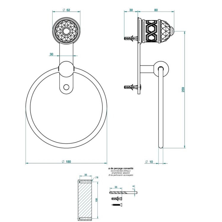 Полотенцедержатель, THG, Duomo Cristal, кольцо, ширина, мм-180, глубина, мм-80, высота, мм-290, тип установки-настенный, цвет-Antique Silver Полотенцедержатель, THG, Duomo Cristal, шгв 180*80*290, цвет-Antique Silver