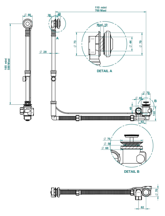 Слив-перелив, THG, Dahlia, полуавтоматический (с подъёмным тросом), диаметр слива, мм-70, накладки-есть, материал-металл, регулируемая высота-min 165 мм/max 580 мм, регулируемый вылет-min 110 мм/max 700 мм, поставляется со стилизованной ручкой управления, цвет-никель Слив-перелив, THG, Dahlia, полуавтоматический (с подъёмным тросом), цвет-никель