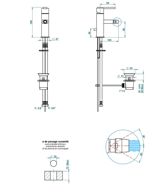 Смеситель для биде, THG, Beluga with lever, тип открывания воды-однорычажный, тип регулирования воды-керамический картридж, отверстия для монтажа-1, высота, мм-169, вынос излива, мм-103, материал ручки-металл, цвет ручки-в цвет смесителя, донный клапан-есть, тип подводки-гибкая, стандарт подвода воды-3/8", цвет-никель Смеситель для биде, THG, Beluga with lever, цвет-никель