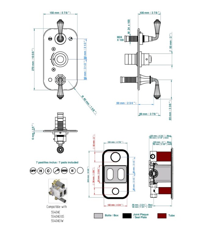 Смеситель для душа, THG, Art Deco Crystal, на 3 потребителя, тип открывания воды-однорычажный, тип регулирования воды-термостатический картридж, монтаж-настенный встраиваемый, внутренняя часть-необходимо заказать, цвет-никель Смеситель для душа, THG, Art Deco Crystal, на 3 потребителя, цвет-никель