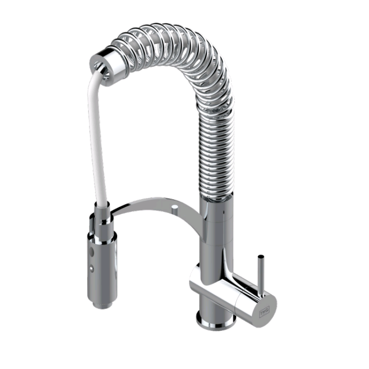 Смеситель для кухни, THG, Tendance, тип открывания воды-однорычажный, тип регулирования воды-керамический картридж, монтаж-на раковину/столешницу, отверстия для монтажа-1, высота, мм-504, вынос излива, мм-200, тип излива-выдвижной, поворотный, тип подводки-гибкая, стандарт подвода воды-1/2" x 3/8", цвет-хром Смеситель для кухни, THG, Tendance, цвет-хром