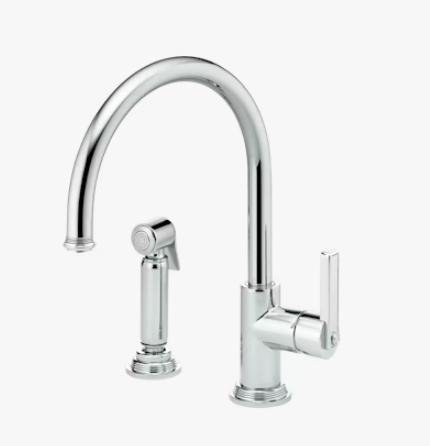 Смеситель для кухни, THG, West Coast Metal, тип открывания воды-однорычажный, монтаж-на раковину/столешницу, отверстия для монтажа-2, высота, мм-356, вынос излива, мм-240, тип подводки-гибкая, стандарт подвода воды-3/8", в комплекте-с ручным душем, цвет-никель Смеситель для кухни, THG, West Coast Metal, с ручным душем, цвет-никель