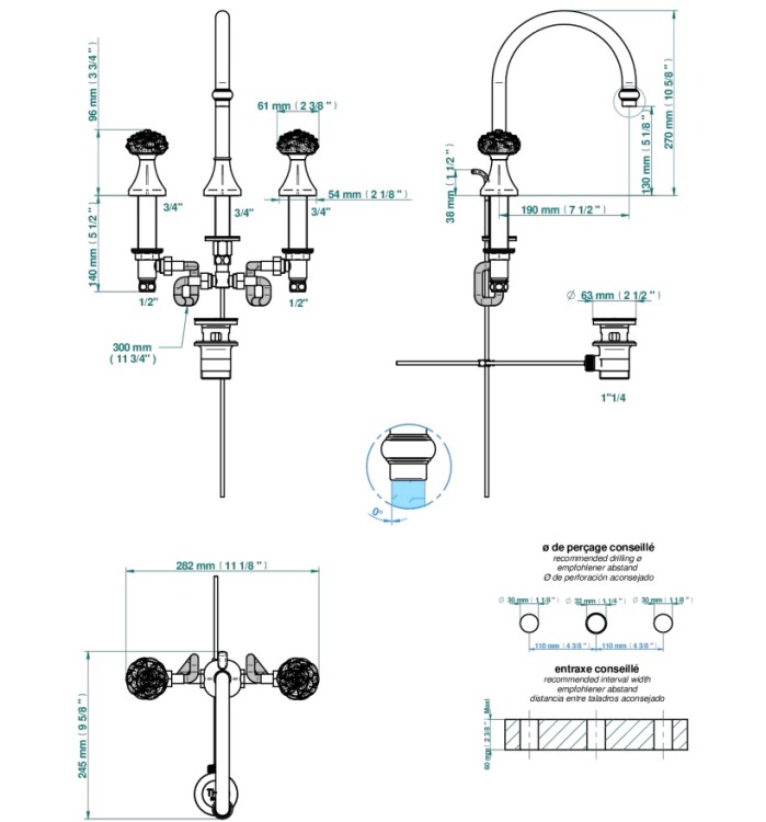 Смеситель для раковины, THG, Camélia Clear crystal, тип открывания воды-вентильный, тип регулирования воды-керамический картридж, монтаж-на раковину/столешницу, отверстия для монтажа-3, высота, мм-270, вынос излива, мм-190, донный клапан-есть, тип подводки-гибкая, стандарт подвода воды-1/2", цвет-никель Смеситель для раковины, THG, Camélia Clear crystal, цвет-никель
