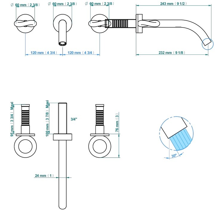 Смеситель для раковины, THG, Collection "O", тип открывания воды-вентильный, тип регулирования воды-керамическая кран-букса, монтаж-настенный встраиваемый, отверстия для монтажа-3, вынос излива, мм-232, внутренняя часть-необходимо заказать, цвет-Black ceram Смеситель для раковины, THG, Collection "O", цвет-Black ceram