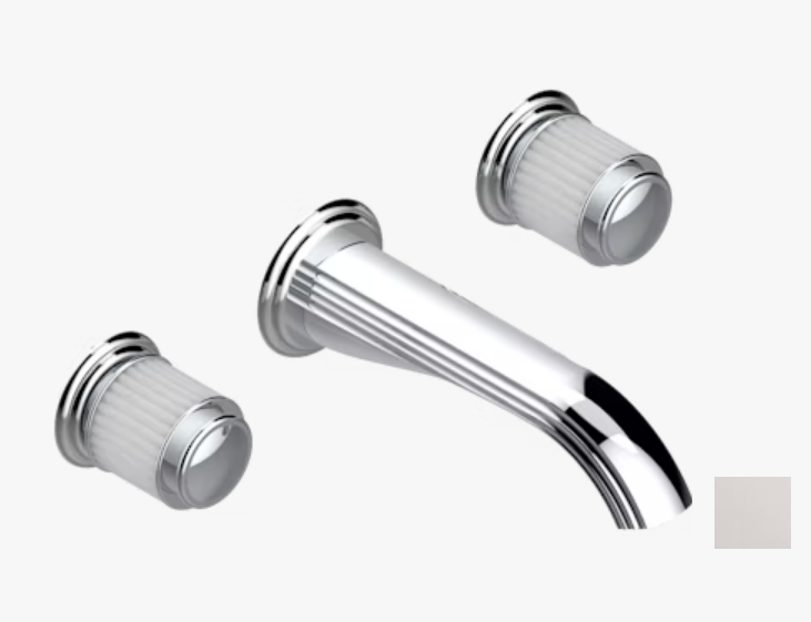 Смеситель для раковины, THG, Jaipur Satin crystal, тип открывания воды-вентильный, монтаж-настенный встраиваемый, отверстия для монтажа-3, высота, мм-70, вынос излива, мм-188, тип излива-неподвижный, донный клапан-отсутствует, тип подводки-жесткая, стандарт подвода воды-3/4", внутренняя часть-необходимо заказать, цвет-никель Смеситель для раковины, THG, Jaipur Satin crystal, цвет-никель