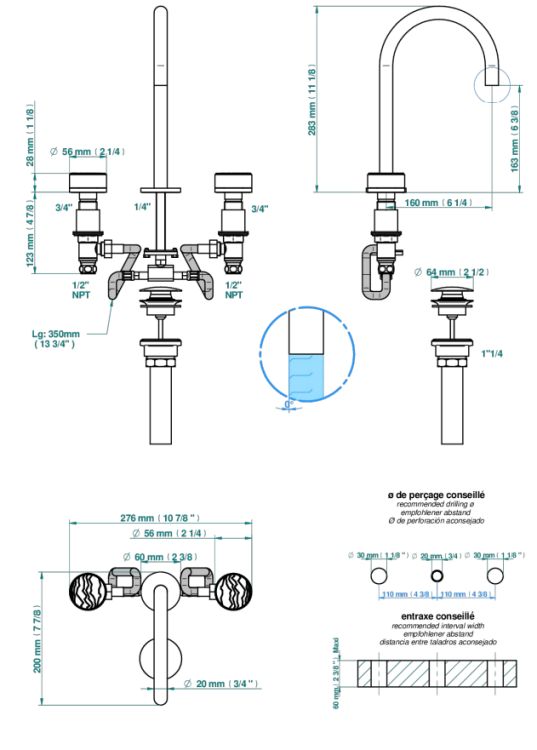 Смеситель для раковины, THG, Yoko Ice, тип открывания воды-вентильный, тип регулирования воды-керамическая кран-букса, монтаж-на раковину/столешницу, отверстия для монтажа-3, высота, мм-283, вынос излива, мм-160, тип излива-неподвижный, тип подводки-гибкая, стандарт подвода воды-1/2", цвет-Black ceram Смеситель для раковины, THG, Yoko Ice, цвет-Black ceram