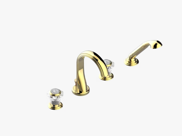 Смеситель для ванны и душа, THG, Dahlia, тип открывания воды-вентильный, тип регулирования воды-керамическая кран-букса, монтаж-на борт ванны, отверстия для монтажа-4, вынос излива, мм-135, ручной душ-в комплекте, цвет-золото светлое Смеситель для ванны и душа, THG, Dahlia, цвет-золото светлое