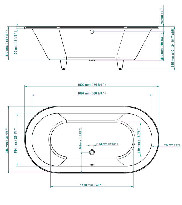 Ванна, THG, Clara, ширина, мм-1900, глубина, мм-945, высота, мм-470, тип установки-встраиваемый, форма-овальная, слив-перелив-необходимо заказать, диаметр слива, мм-54, упаковка-деревянный ящик, поставляется без донного клапана, цвет-белый Ванна, THG, Clara, шгв 1900*945*470, упаковка-деревянный ящик, поставляется без донного клапана, цвет-белый