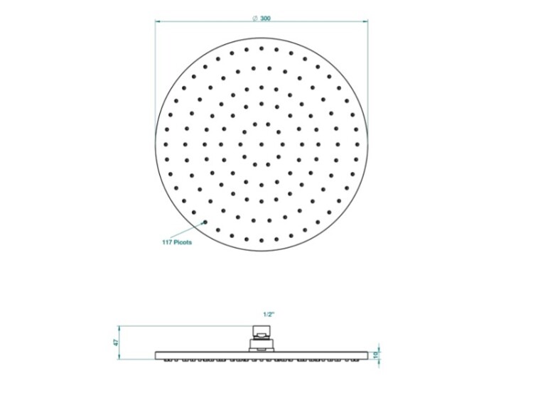 Верхний душ, THG, ширина, мм-300, глубина, мм-300, высота, мм-47, форма-круглая, держатель-необходимо заказать, цвет-никель, плоский 1/2" с защитой от жесткой воды Верхний душ, THG, шгв 300*300*47, цвет-никель