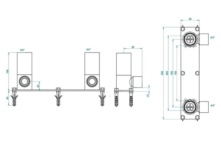 Внутрення часть, THG, назначение-для смесителя, стандарт подвода воды-3/4", монтажная пластина с подводками для напольных вертикальных стоек Внутрення часть, THG, для смесителя