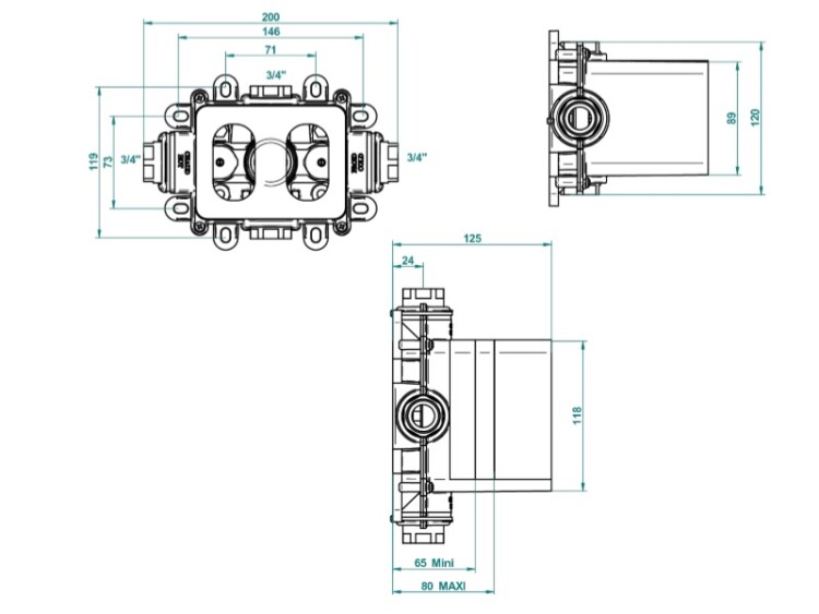 Внутренняя часть, THG, назначение-для термостатического смесителя, стандарт подвода воды-3/4", 60 л/мин, с восковым картриджем, коробкой для встраивания, без ручки регулировки Внутренняя часть, THG, для термостатического смесителя