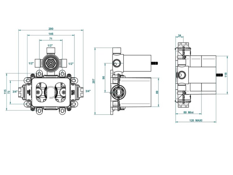 Внутренняя часть, THG, назначение-для термостатического смесителя, стандарт подвода воды-1/2", с коробкой для встраивания, восковым картриджем, без ручек регулировки Внутренняя часть, THG, для термостатического смесителя