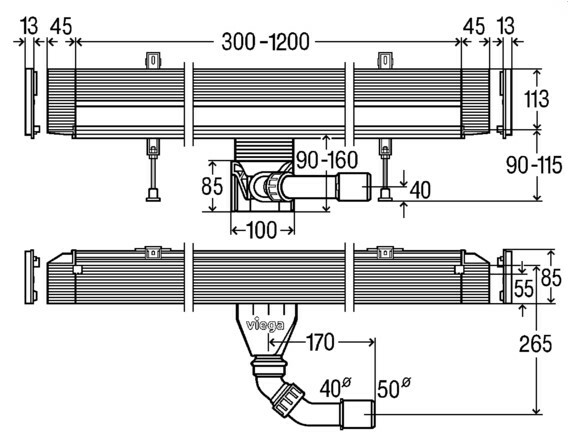 Дренажный канал, Viega, Advantix Vario, ширина, мм-113, длина,мм-1200, высота, мм-160, монтаж-встраиваемый в стену, вид затвора-гидрозатвор, пропускная способность, л/сек-0,45, сифон-есть, опоры-есть, материал-пластик, модель 4967.10 Дренажный канал, Viega, Advantix Vario, шдв 113*1200*160