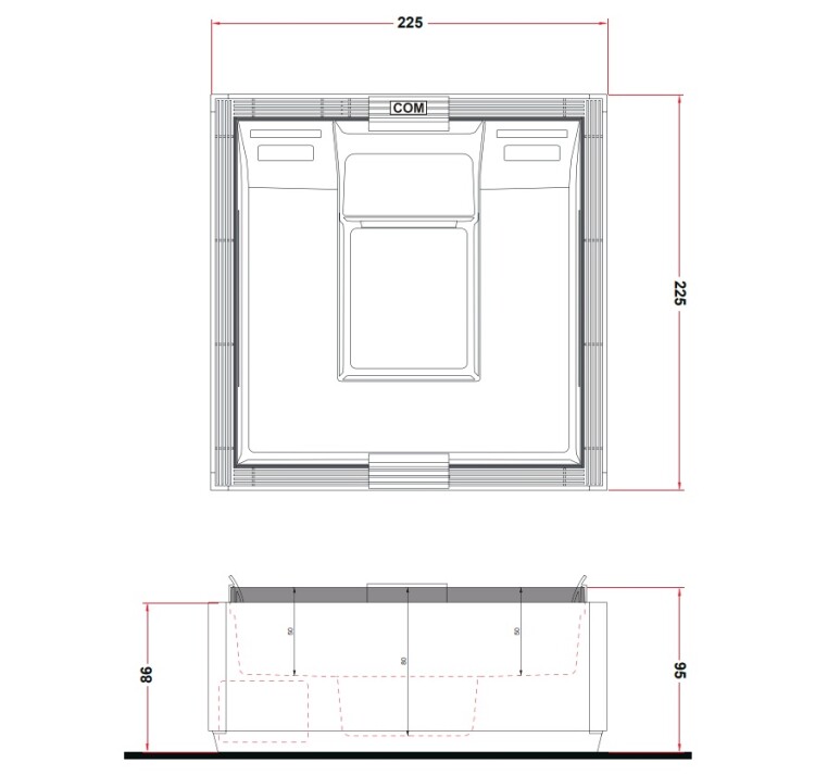 Минибассейн, Treesse, Ice, ширина, мм-2250, глубина, мм-2250, высота, мм-950, водоизмещение (л)-2500, тип установки-отдельностоящий, форма-квадратная, гидромассаж-есть, Whirlpool jet, Whirlpool jet plus, кол-во человек-5-6 чел, автоматическое наполнение, автоматический слив, дизинфекция озоном, уровневый датчик , система рециркуляции с карт. фильтрами, нагреватель с регулировкой температуры, регуляторы воздуха, большой подголовник-2, маленький подголовник-4, хромотерапия со светодиодами, боковые панели VTR арт.B22, термическая крышка, цвет антрацит, цвет-белый Минибассейн, Treesse, Ice, шгв 2250*2250*950, цвет-белый