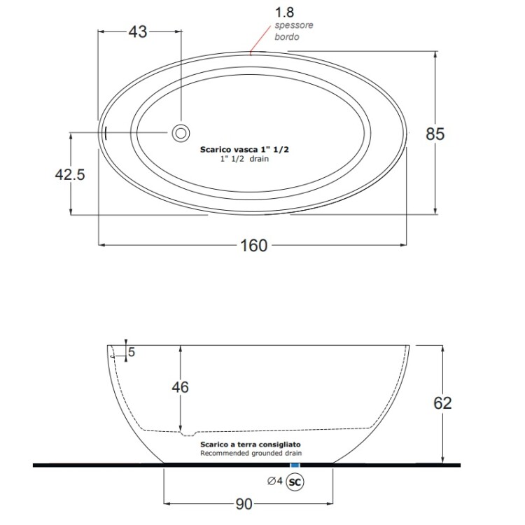 Ванна, Treesse, Bali, ширина, мм-1600, глубина, мм-850, высота, мм-620, водоизмещение (л)-330, тип установки-отдельностоящий, форма-овальная, панель-есть, слив-перелив-в комплекте, материал-искусственный камень, цвет-белый матовый Ванна, Treesse, Bali, шгв 1600*850*620, цвет-белый матовый