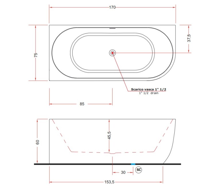 Ванна, Treesse, Cora, ширина, мм-1700, глубина, мм-750, высота, мм-600, водоизмещение (л)-270, тип установки-пристенный, левая, форма-прямоугольная, панель-есть, слив-перелив-в комплекте, материал-акрил, цвет-белый Ванна, Treesse, Cora, левая, шгв 1700*750*600, цвет-белый