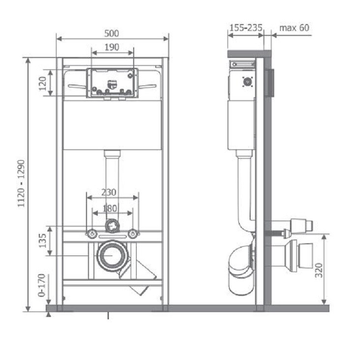 Инсталляция, Elsen, для унитаза, ширина, мм-500, глубина, мм-155, высота, мм-1120, материал-металл/пластик, тип установки-к стене, объем смыва, л-3/6, клавиша смыва-необходимо заказать, крепления в комплекте, звукоизоляция в комплекте Инсталляция, Elsen, для унитаза, шгв 500*155*1120, звукоизоляция в комплекте
