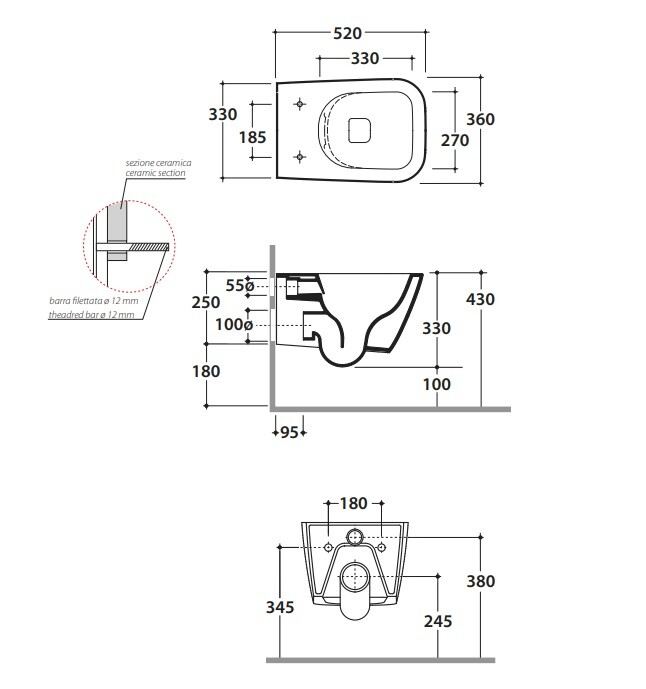 Унитаз, Globo, STONE, безободковый (с открытым смывным краем), тип установки-подвесной, ширина, мм-360, глубина, мм-520, высота, мм-330, форма чаши-прямоугольная, выпуск-горизонтальный, материал-керамика, сиденье-необходимо заказать, вид грязеотталкивающего покрытия-CERASLIDE, BATAFORM, крепления в комплекте, цвет-черный матовый Унитаз, Globo, STONE, подвесной, шгв 360*520*330, CERASLIDE, BATAFORM, цвет-черный матовый