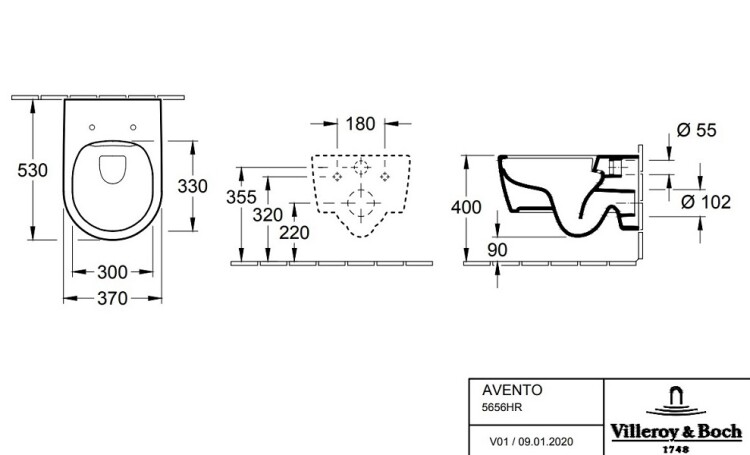 Унитаз, Villeroy&Boch, Avento, тип установки-подвесной, ширина, мм-370, глубина, мм-530, высота, мм-310, форма чаши-овальная, выпуск-горизонтальный, материал-санфарфор, сиденье-есть, с функцией QuickRelease и SoftClosing, вид грязеотталкивающего покрытия-CeramicPlus, цвет-Stone White, с вертикальным смывом, комбинированная упаковка Унитаз, Villeroy&Boch, Avento, подвесной, шгв 370*530*310, CeramicPlus, цвет-Stone White