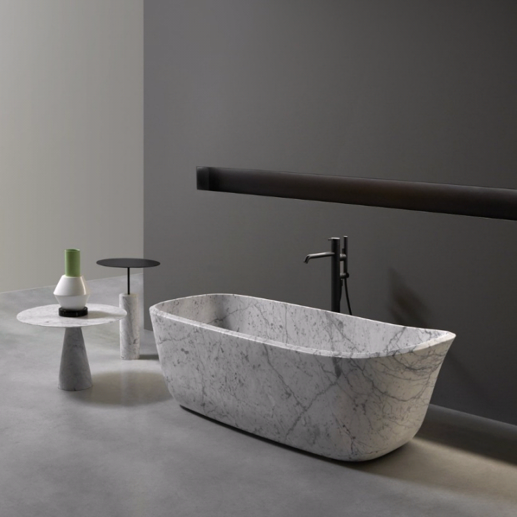 Ванна, Antonio Lupi, DAFNE, ширина, мм-1700, глубина, мм-750, высота, мм-560, тип установки-отдельностоящий, форма-овальная, в комплекте с нажимным донным клапаном и пробкой из мрамора, материал-камень, цвет-белый мрамор (Bianco Carrara) Ванна, Antonio Lupi, DAFNE, шгв 1700*750*560, цвет-белый мрамор (Bianco Carrara)