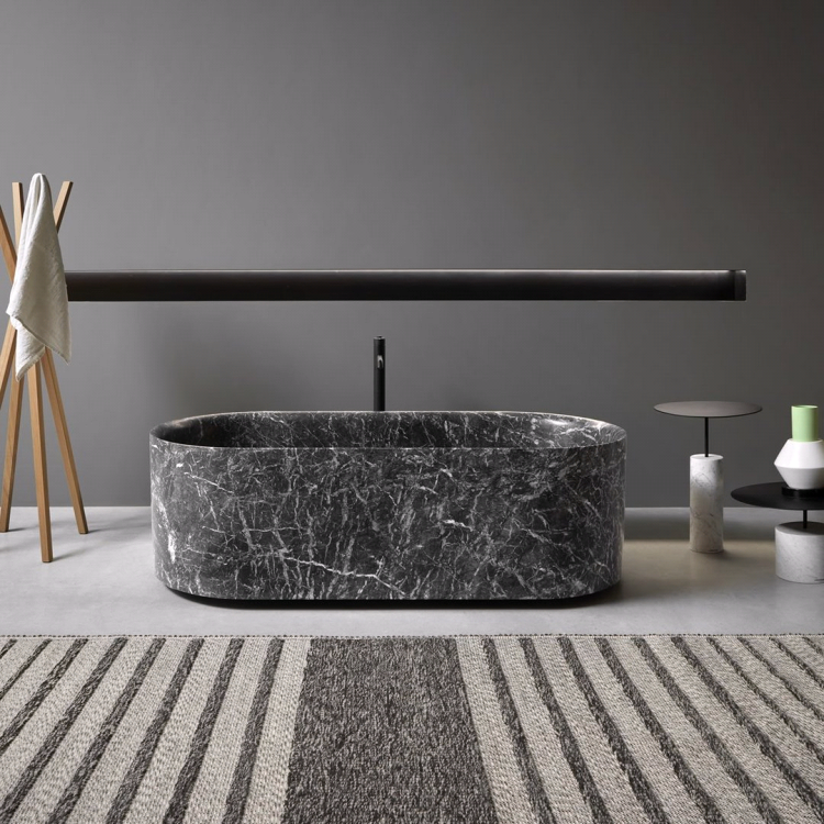 Ванна, Antonio Lupi, Nebula, ширина, мм-1750, глубина, мм-800, высота, мм-550, тип установки-отдельностоящий, форма-овальная, в комплекте с нажимным донным клапаном и пробкой из мрамора, материал-камень, цвет-Nero Marquina (черный мрамор) Ванна, Antonio Lupi, Nebula, шгв 1750*800*550, цвет-Nero Marquina (черный мрамор)