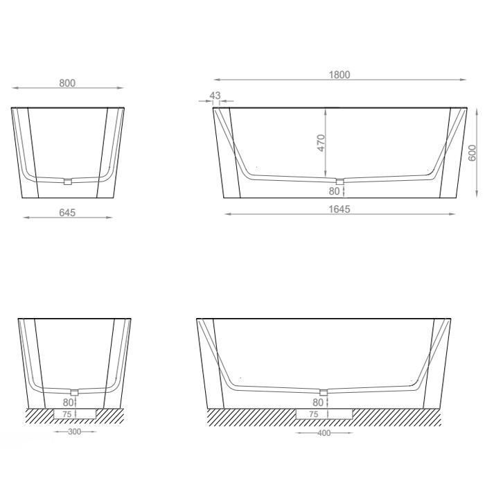 Ванна, Artceram, Square, ширина, мм-1800, глубина, мм-800, высота, мм-600, тип установки-отдельностоящий, форма-прямоугольная, слив-перелив-в комплекте, материал-Living Tec, цвет-White matt Ванна, Artceram, Square, шгв 1800*800*600, цвет-White matt