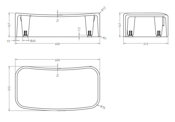 Ступень для ванны, Salini, Oriente Ofuro Step, ширина, мм-600, глубина, мм-315, высота, мм-167, с ножками, материал-S-Sense (литьевой мрамор), цвет-RAL4010 глянцевый Ступень для ванны, Salini, Oriente Ofuro Step, шгв 600*315*167, цвет-RAL4010 глянцевый