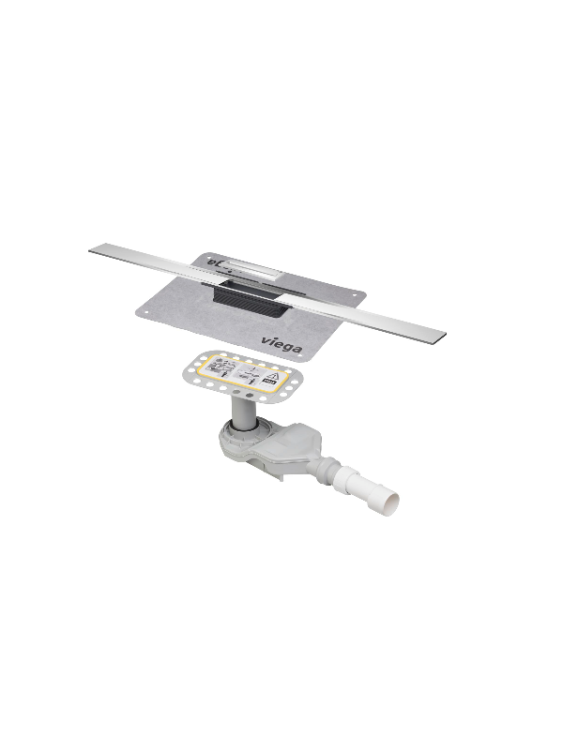Дренажный канал, Viega, Advantix Cleviva, ширина, мм-1200, высота, мм-70, монтаж-в пол, пропускная способность, л/сек-0.4, материал-нержавеющая сталь, цвет-матовая нержавеющая сталь, с вкладкой Advantix Visign C1, модель 4981.11 Дренажный канал, Viega, Advantix Cleviva, шв 1200*70, матовая нержавеющая сталь
