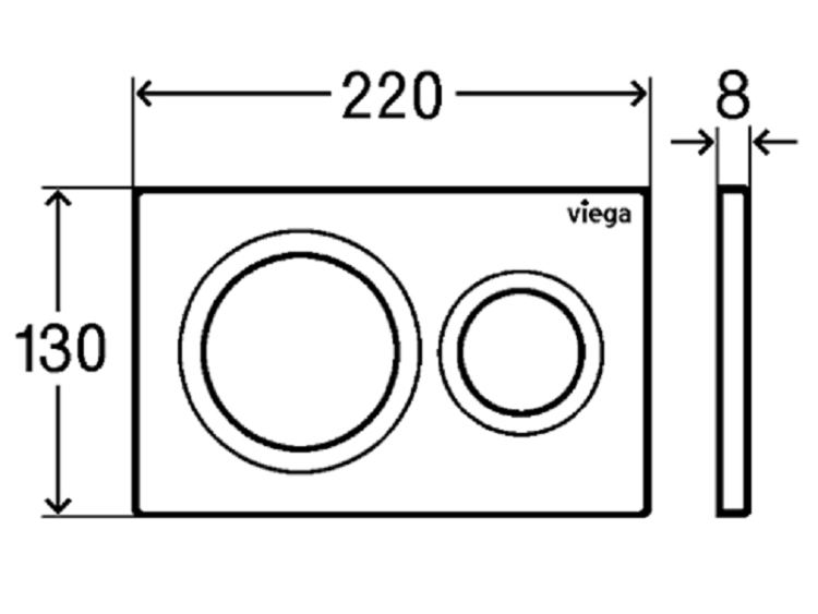Клавиша смыва, Viega, Prevista, Visign for Style 20, для унитаза, ширина, мм-220, глубина, мм-8, высота, мм-130, тип смыва-двойной, тип управления-ручной нажимной, материал-пластик, комплектация-крепежная рамка, комплект толкателей, фиксирующие стержни, цвет-матовый хром Клавиша смыва, Viega, Prevista, Visign for Style 20, для унитаза, механический, шгв 220*8*130, цвет-матовый хром