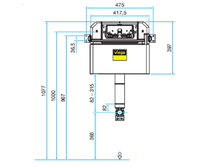 Смывной бачок скрытого монтажа, Viega, Prevista, для напольных унитазов, крепления в комплекте, Комплектация: редуктор скорости смыва, присоединительный комплект для унитаза, крепеж выдвижные опоры подключение воды R½ с задней стороны и сверху Смывной бачок скрытого монтажа, Viega, Prevista, для напольных унитазов