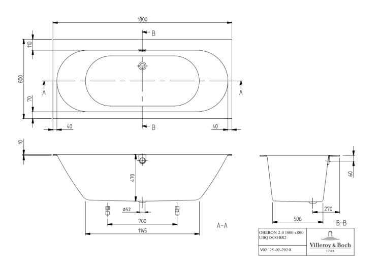 Ванна, Villeroy&Boch, Oberon 2.0, ширина, мм-1800, глубина, мм-800, высота, мм-470, водоизмещение (л)-190, тип установки-встраиваемый/пристенный, форма-прямоугольная, панель-есть, Profibox 2.0 угол, слив-перелив-в комплекте, диаметр слива, мм-52, ножки-есть, материал-Quaryl, цвет-альпийский белый (белый Alpin) Ванна, Villeroy&Boch, Oberon 2.0, шгв 1800*800*470, цвет-альпийский белый (белый Alpin)