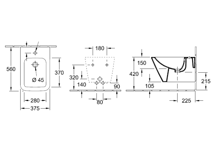Биде, Villeroy&Boch, Finion, тип установки-подвесной, ширина, мм-375, глубина, мм-560, высота, мм-315, форма чаши-прямоугольная, отверстия для смесителя-1, вид грязеотталкивающего покрытия-CeramicPlus, крепления в комплекте, цвет биде-альпийский белый (белый Alpin), с запираемым клапаном с керамической крышкой Биде, Villeroy&Boch, Finion, подвесной, шгв 375*560*315, CeramicPlus, цвет биде-альпийский белый (белый Alpin)
