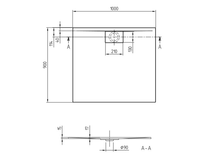 Душевой поддон, Villeroy&Boch, Architectura Metalrim, ширина, мм-1000, глубина, мм-900, высота, мм-17, форма-прямоугольная, сифон-необходимо заказать, диаметр слива, мм-90, материал-акрил, цвет-белый, крышка стока в цвете альпийский белый Душевой поддон, Villeroy&Boch, Architectura Metalrim, шгв 1000*900*17, цвет-белый